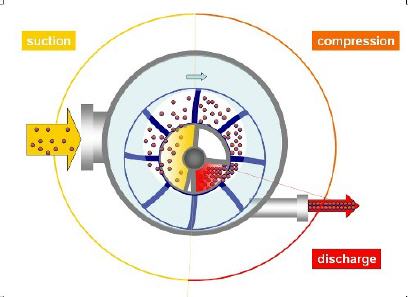 Le liquide d'anneau assure l'étanchéité en bout de pâle puisqu'il n'y a pas de contact entre la roue et le corps, et aussi entre les lumières de refoulement et d'aspiration afin d'éviter une fuite entre la haute et la basse pression.